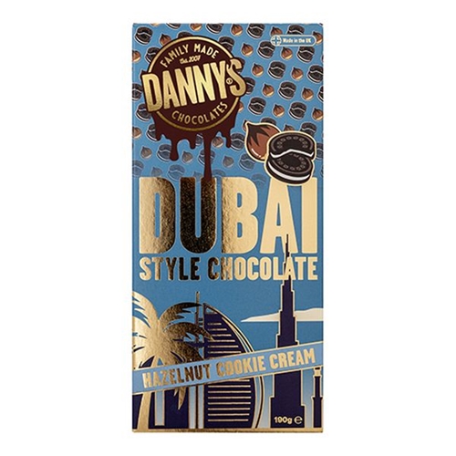 Danny's Dubai Style Hazelnut Cookie Cream Chocolate Bar 190g [Pack of 10]