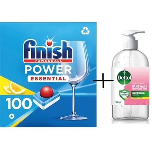 Finish Powerball Dishwasher Tablets Lemon Pack of 100 + FREE Dettol Pro Cleanse Antibacterial Liquid Hand Soap 500ml